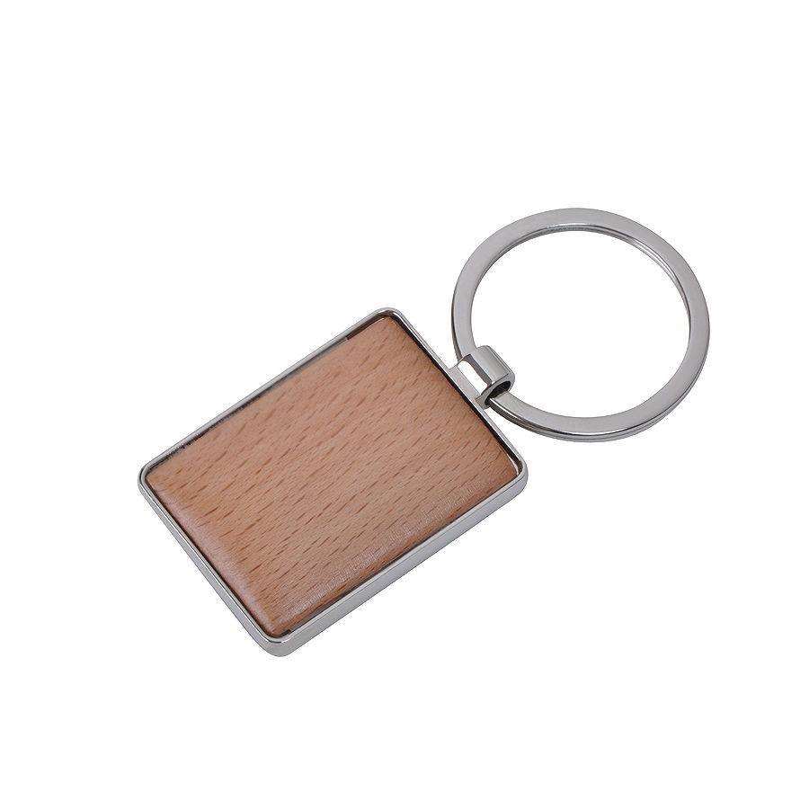 Брелок "Woody" прямоугольный, серебристый, коричневый, дерево, металл