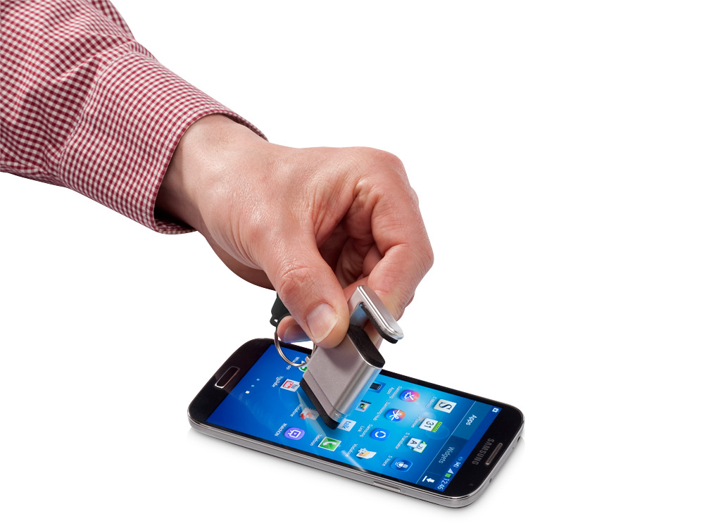 Подставка-брелок для мобильного телефона с губкой для чистки экрана. Функциональный промо-сувенир для продвижения цифровых устройств с сенсорным экраном: мобильных телефонов, планшетов, фотоаппаратов и т.д. Различные расцветки. Возможно нанесение изображения по вашему эскизу.