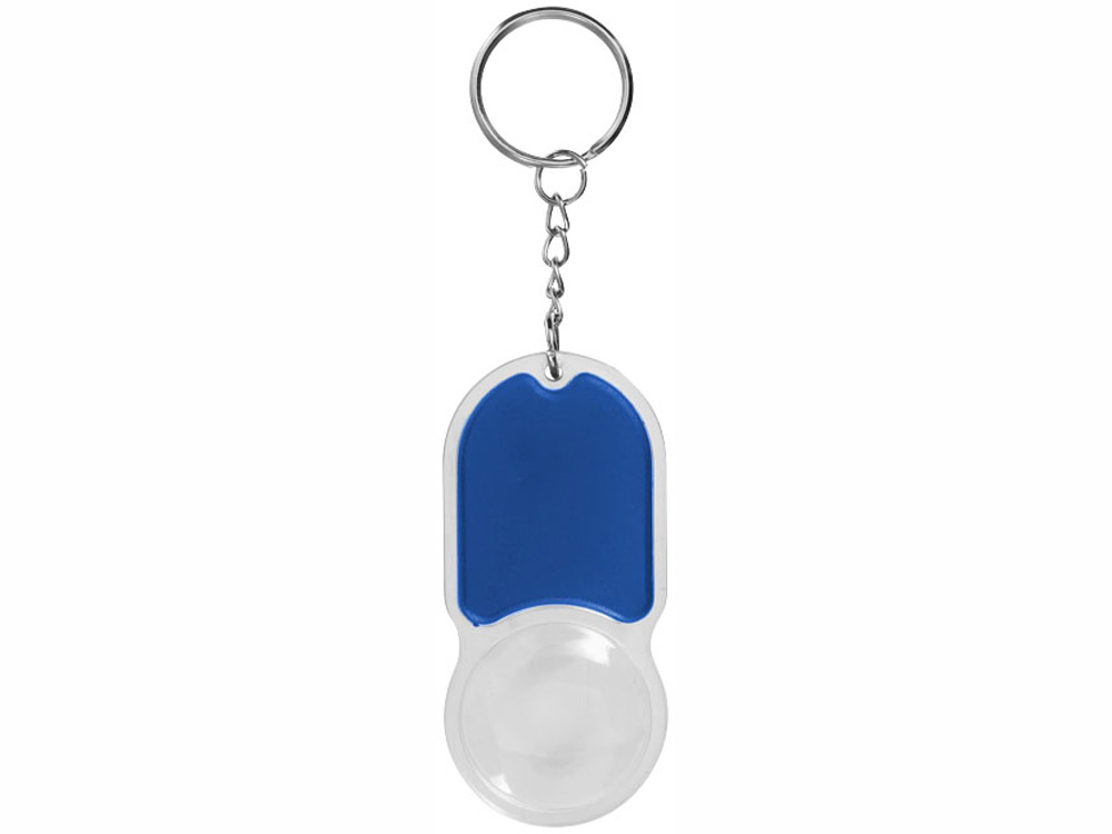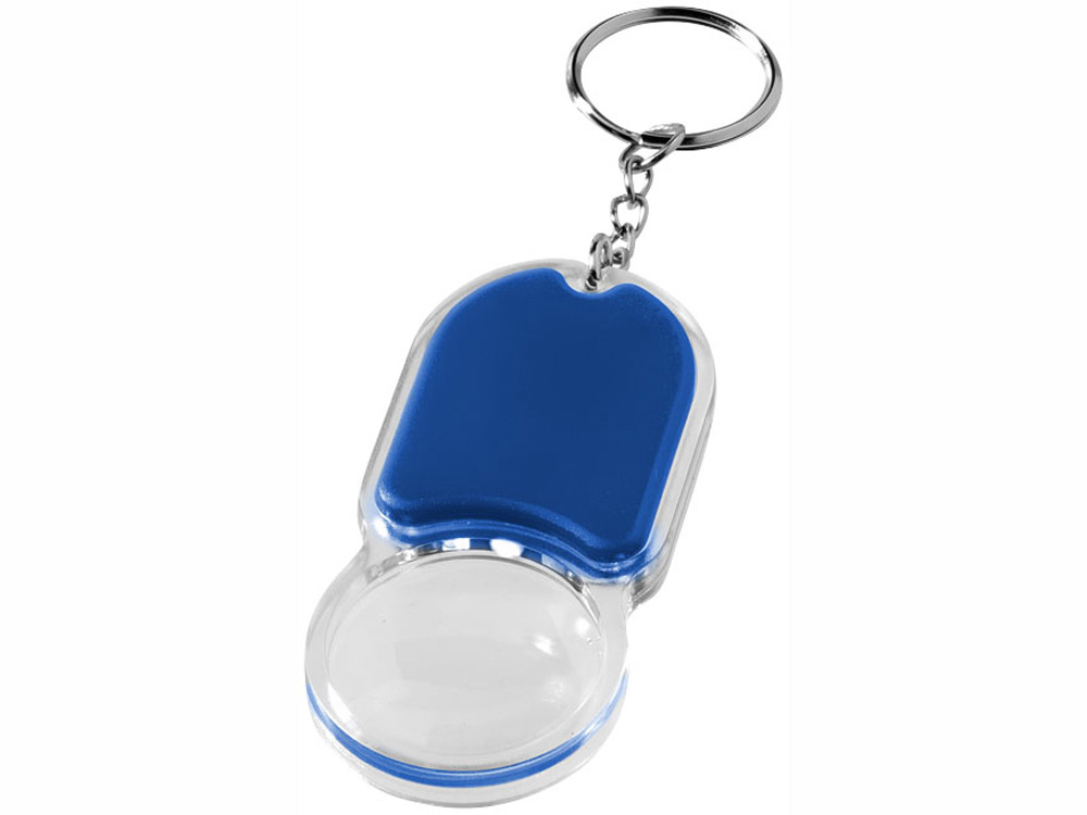 Удобный брелок с увеличительным стеклом и фонариком для ключей с выключателем на задней стороне. Металлическое кольцо для ключей Ø 25 мм.