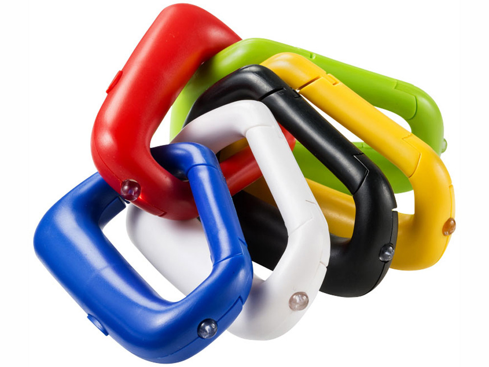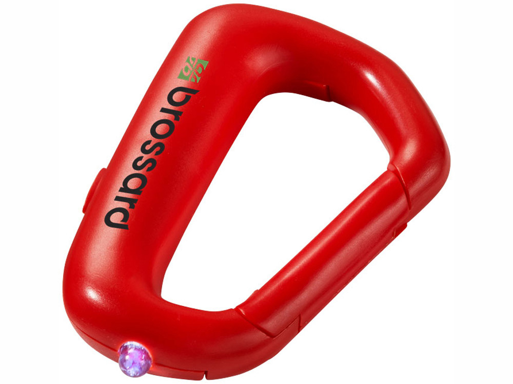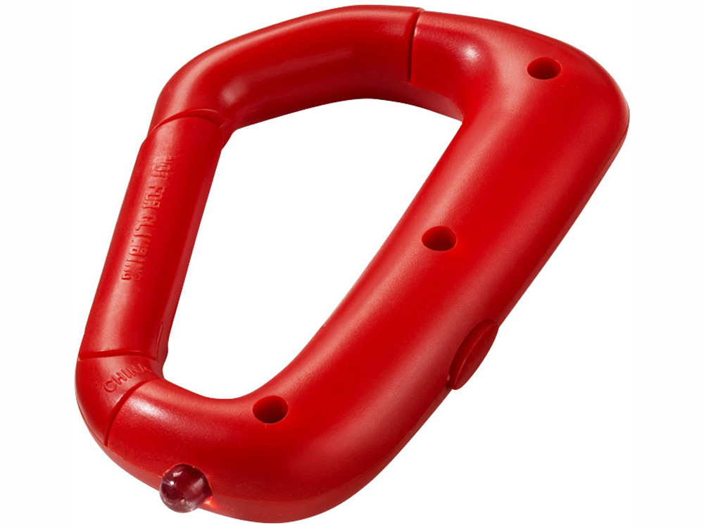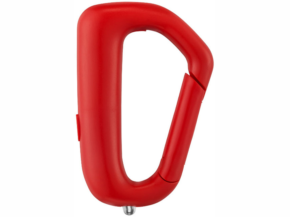 Фонарик-карабин-брелок Proxima. Один белый светодиод и карабин. Кнопка включения вверху. Не предназначен для лазанья. Батарейки включены в комплект. АБС-пластик.