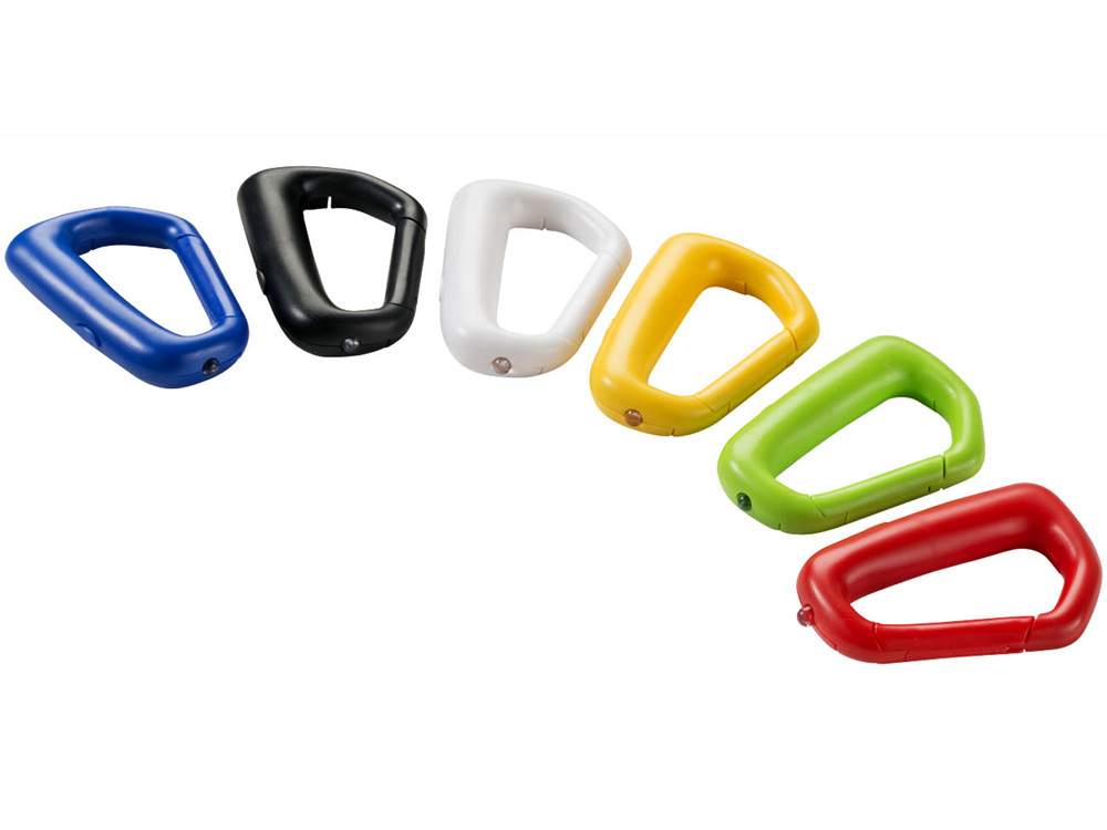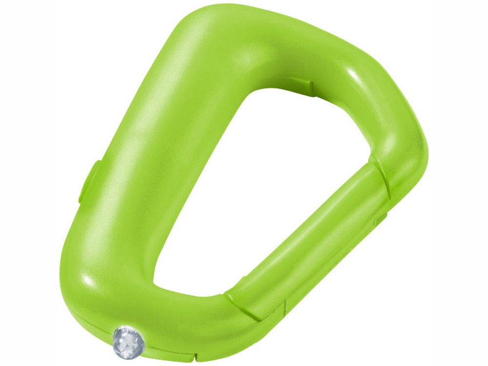 Фонарик-карабин-брелок Proxima. Один белый светодиод и карабин. Кнопка включения вверху. Не предназначен для лазанья. Батарейки включены в комплект. АБС-пластик.
