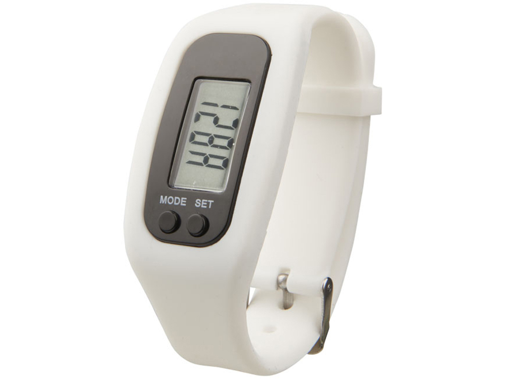 Смарт часы с шагомером Get-Fit. Силиконовые смарт часы с металлической застежкой, кнопками для изменения настроек и 5-ти разрядным цифровым диодным дисплеем. Функции: часов, будильника, подсчета шагов и сожженных калорий. Настройки можно использовать как для метрических так и для имперских единиц. Упакованы в пластиковую коробку, которую можно использовать для нанесения. Батарейки в комплекте. Силикон.
