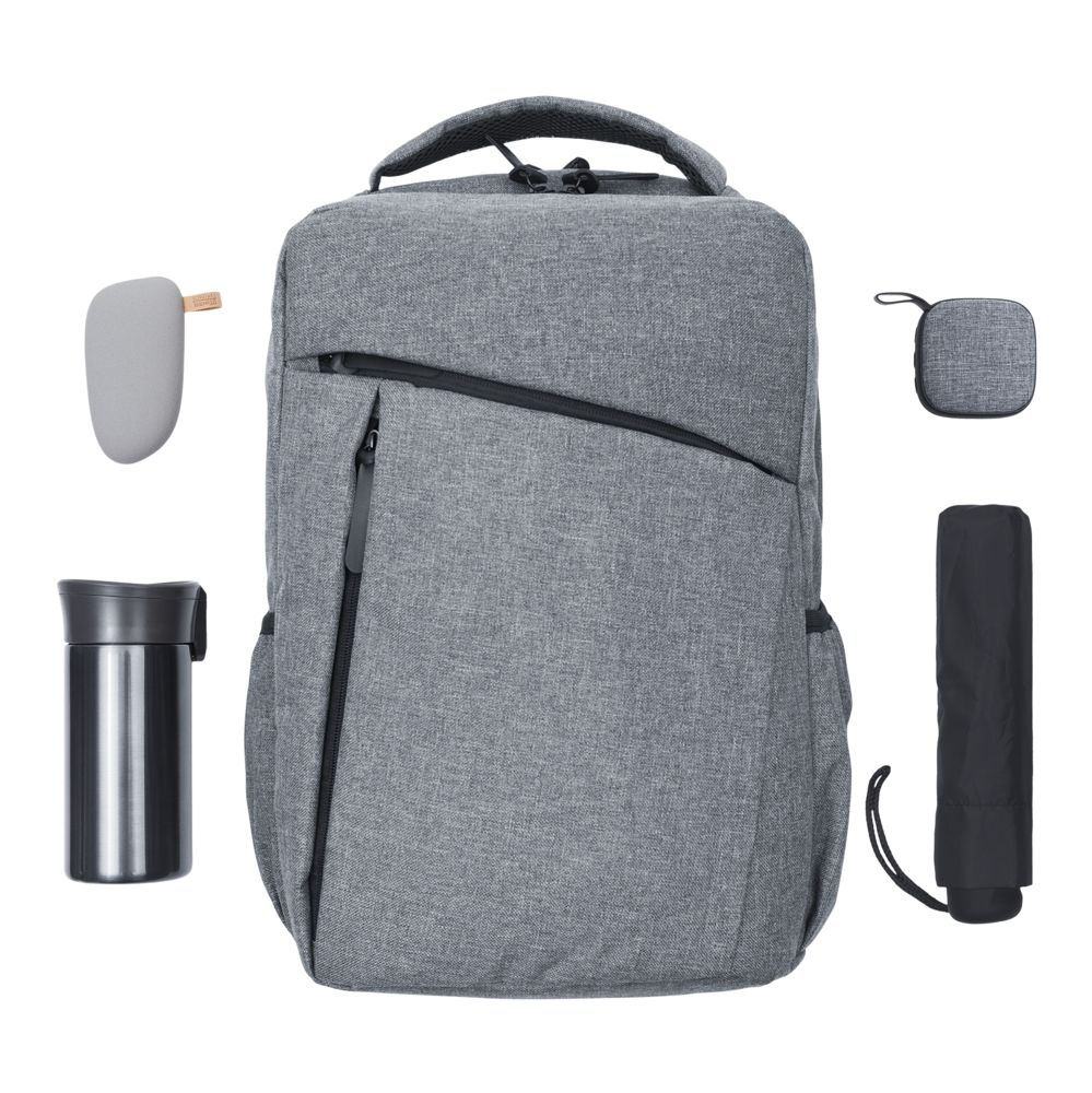 рюкзак: 40х28х19 см; термостакан: высота 17,2 см; диаметр 7,3 см; зонт: длина 56 см, диаметр купола 96 см; длина в сложении 24,5 см; аккумулятор: 11х6х2,7 см; упаковка: 16х11х4,8 см; колонка: 7х7х3,8 см