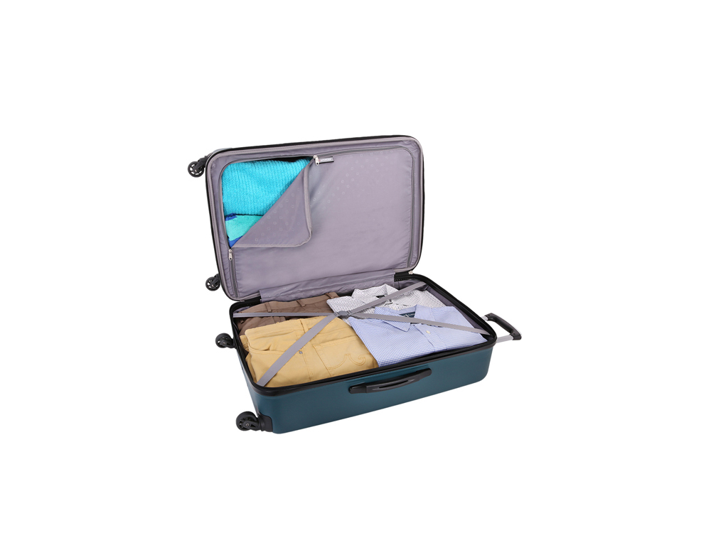 Корпус чемодана выполнен из износоустойчивого АБС-пластика. Два больших отделения помогут максимально удобно разместить вещи: одно отделение фиксируется молнией, а второе специальным ремнями для одежды. Вместительность чемодана может быть дополнительно увеличена на 5см. Чемодан легко перемещается при помощи четырех колес вращающихся на 360 градусов и выдвижной ручки с фиксатором. Эргономичные ручки для переноски облегчат его поднятие.