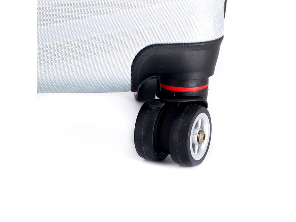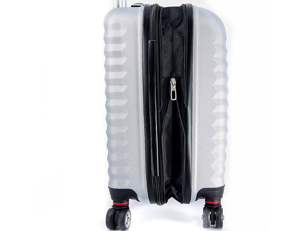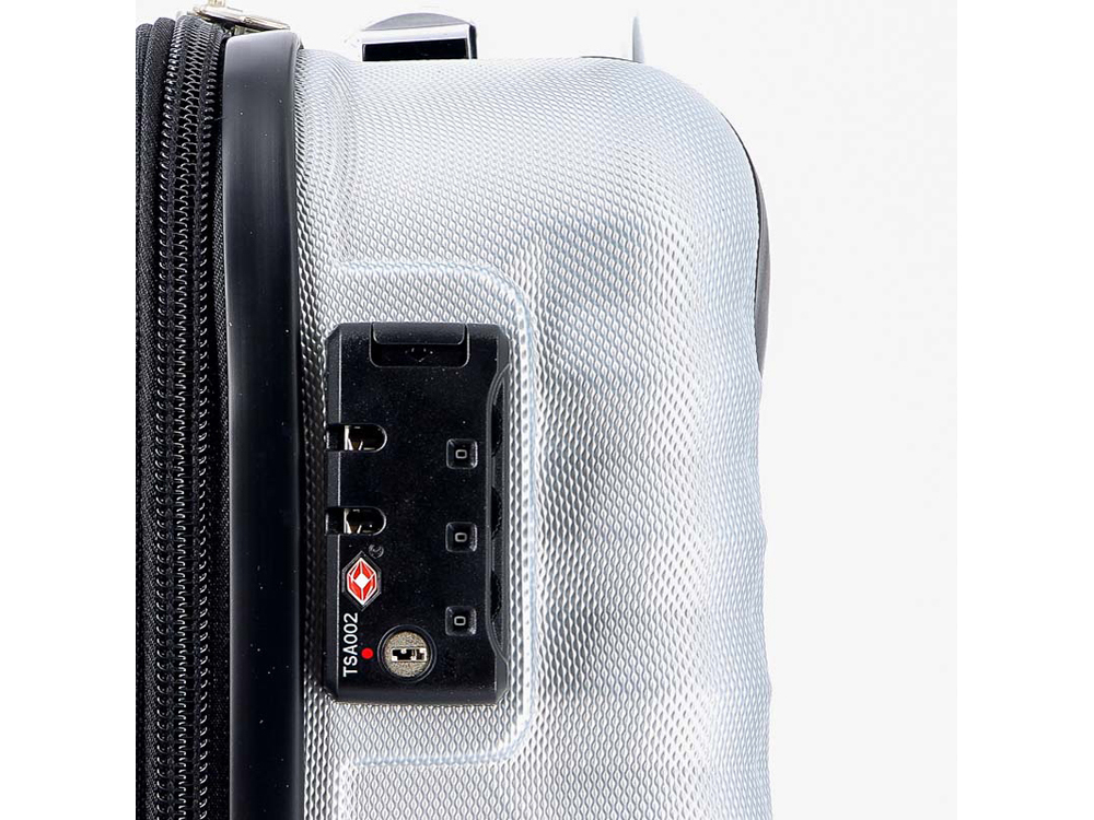 Корпус чемодана выполнен из износоустойчивого АБС-пластика. Элегантный чемодан оснащен надежным трехзначным кодовым замком TSA. Два больших отделения помогут максимально удобно разместить вещи: одно отделение фиксируется молнией, а второе специальным ремнями для одежды. Не большой внутренний карман на молнии отлично подойдет для хранения вещей первой необходимости и средств индивидуальной гигиены. Вместительность чемодана может быть дополнительно увеличена на 5см. Чемодан легко перемещается при помощи четырех пар вращающихся на 360 градусов колес и выдвижной ручки с фиксатором. Эргономичные ручки для переноски облегчат его поднятие.