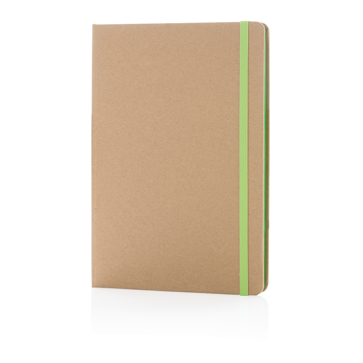 Блокнот с крафтовой обложкой и страницами из переработанной бумаги. 72 листа/144 страницы плотностью 70 г / м2. Листы кремового оттенка. Эластичная закрывающая резинка и лента-закладка.