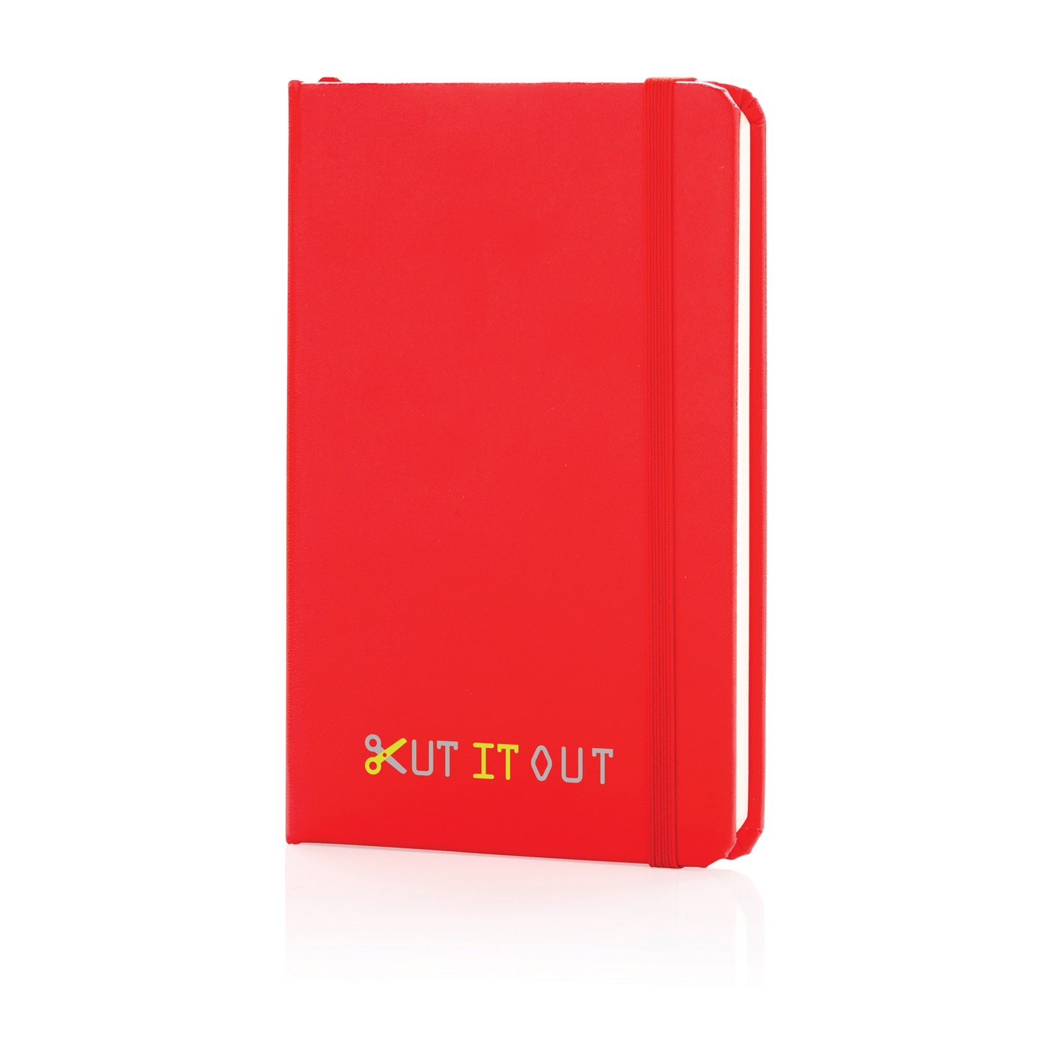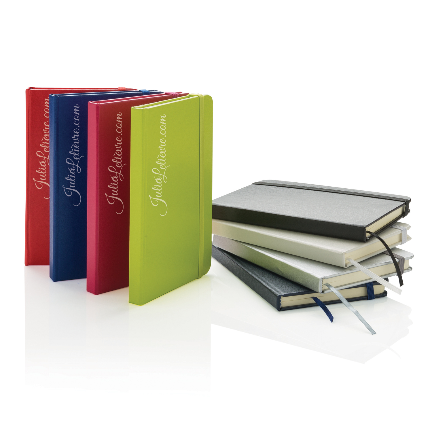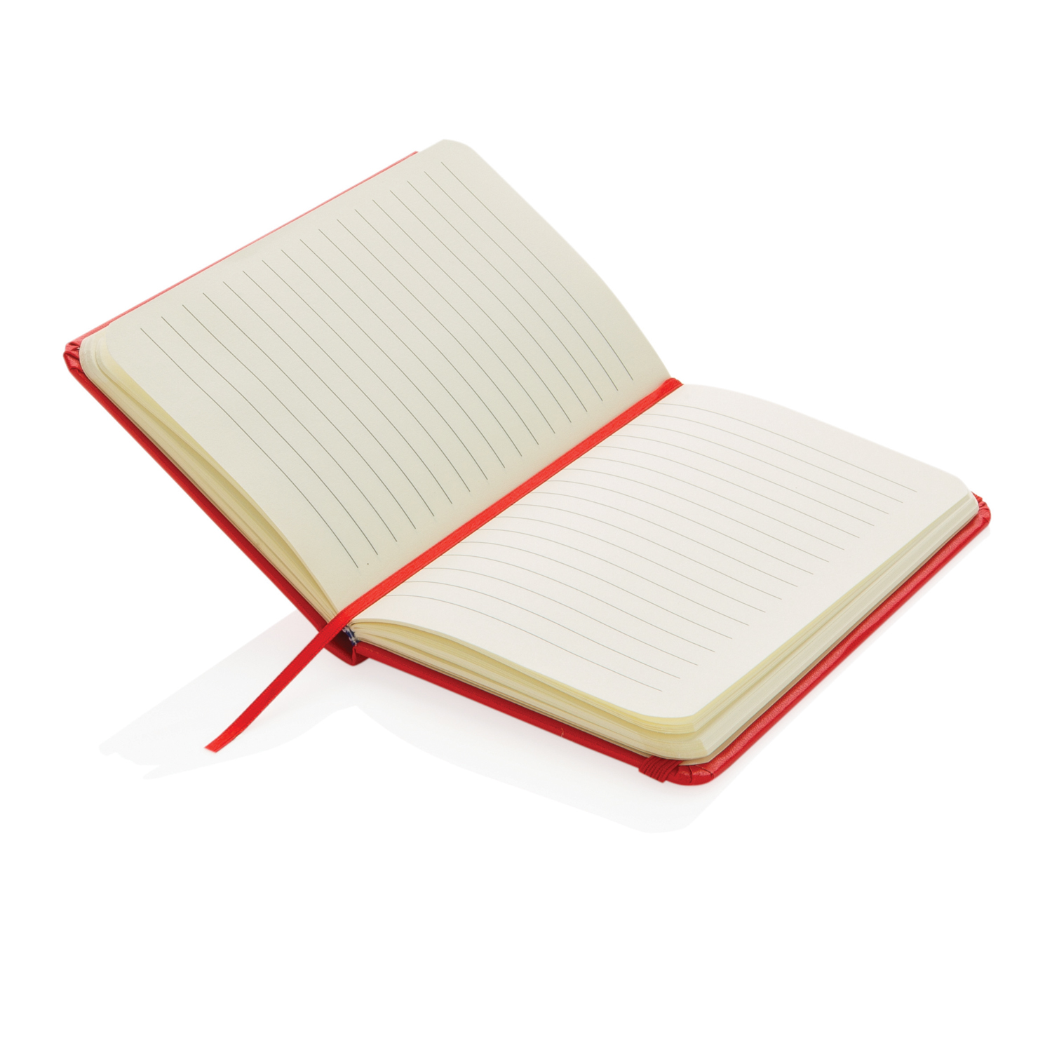 Блокнот для записей Basic в твердой обложке формата А6 на резинке с ляссе. 72 страницы, линованная бумага кремового цвета, плотностью 70 г/м2.
