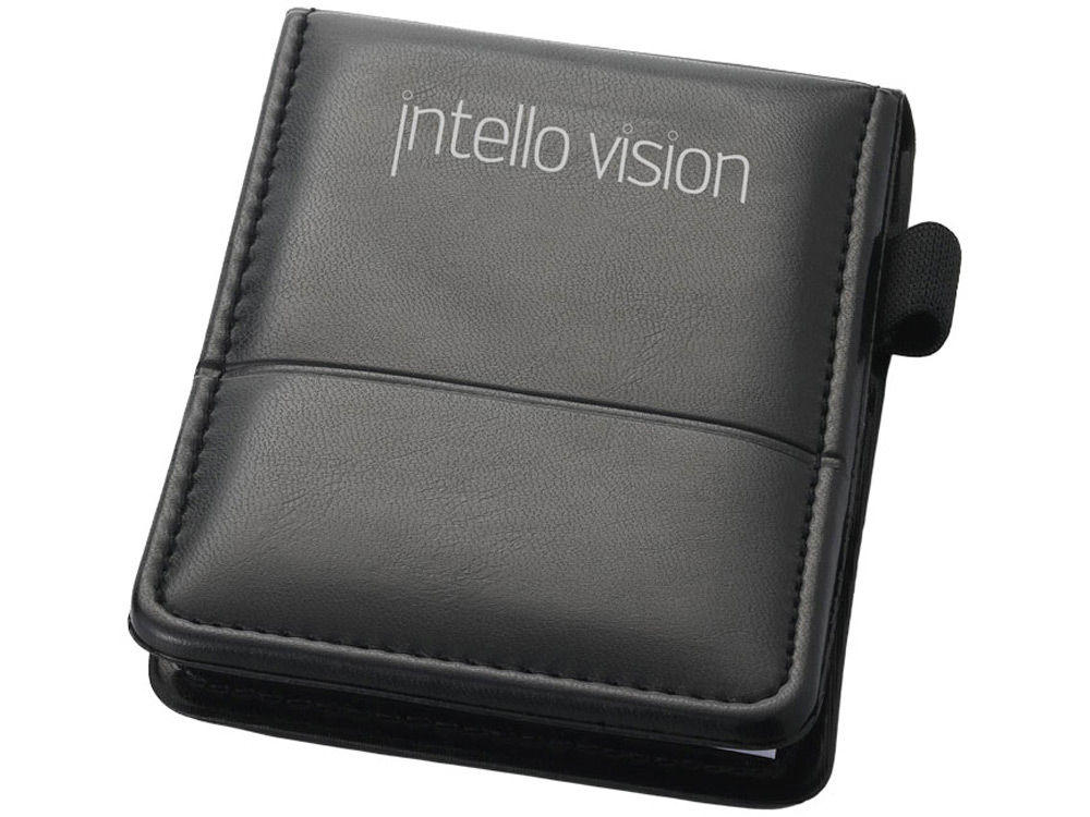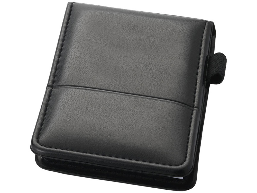 Блокнот Flemming. Блокнот формата A7 с глянцевой обложкой из искусственной кожи. Включает 40 чистых листов, держатель для ручки и 2 кармашка для визиток.