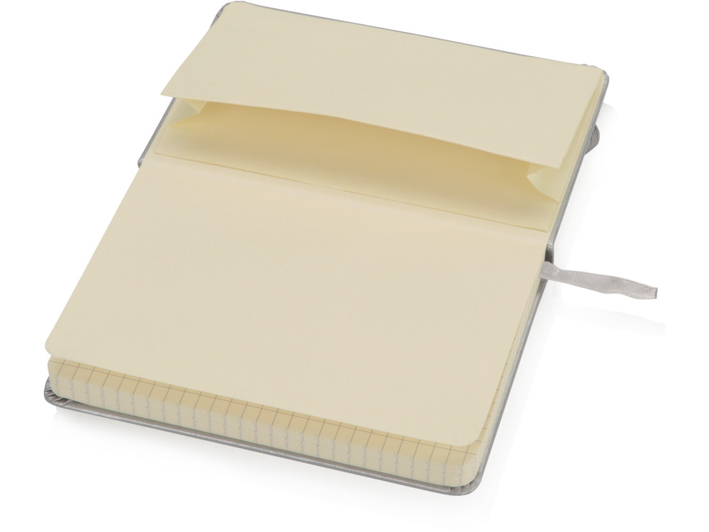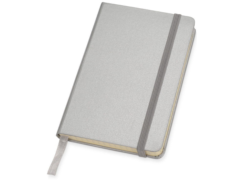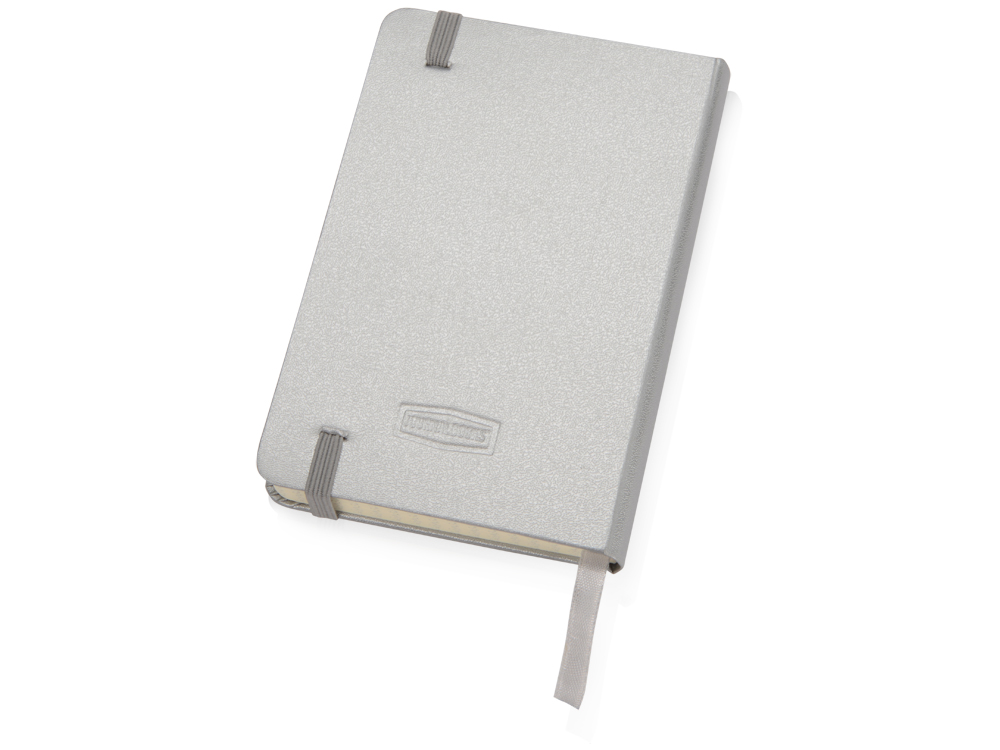 Удобный блокнот в твердой обложке с эластичной застежкой и закладкой. Формат А6. 80 листов бумаги в клетку. На плотную обложку, стилизованную под искусственную кожу, можно сделать нанесение логотипа вашей компании.