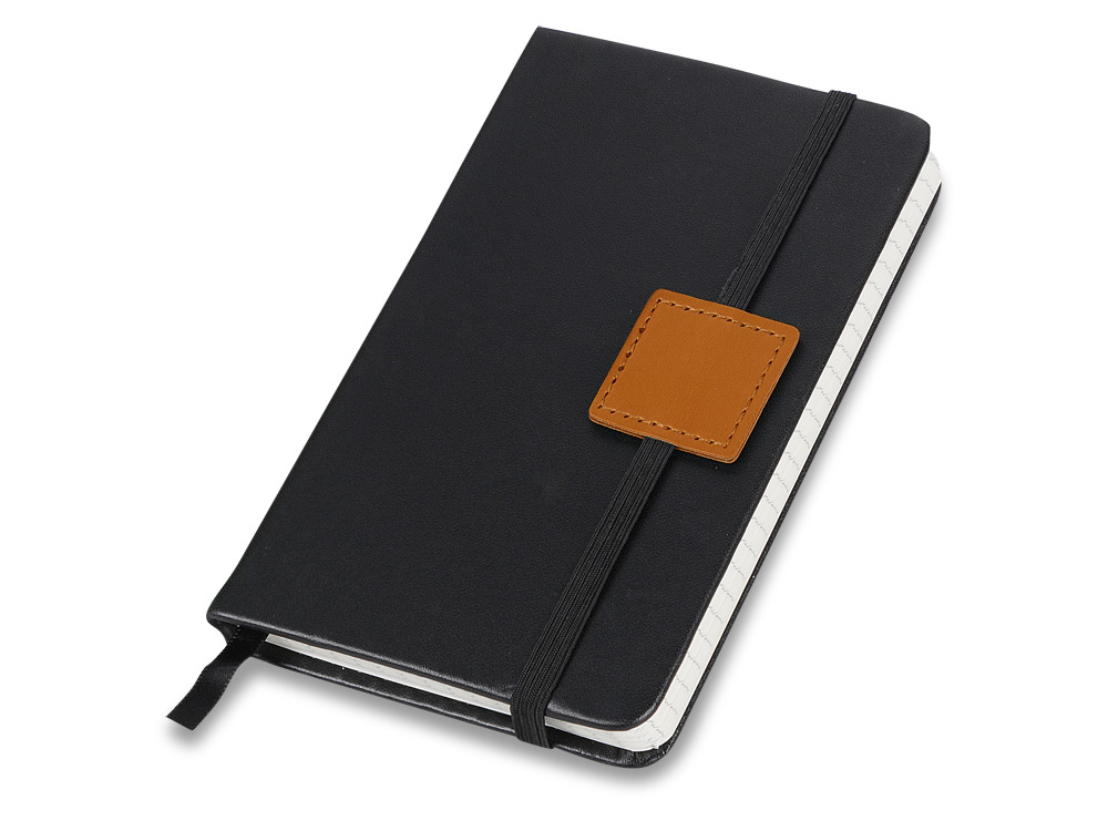 Дизайнерский блокнот в твердой обложке с квадратной кожаной вставкой яркого цвета. Эластичная застежка, закладка, а также удобный карман на заднем форзаце, куда можно сложить визитки или дисконтные карты. Красивая кремовая бумага, листы в клетку.
