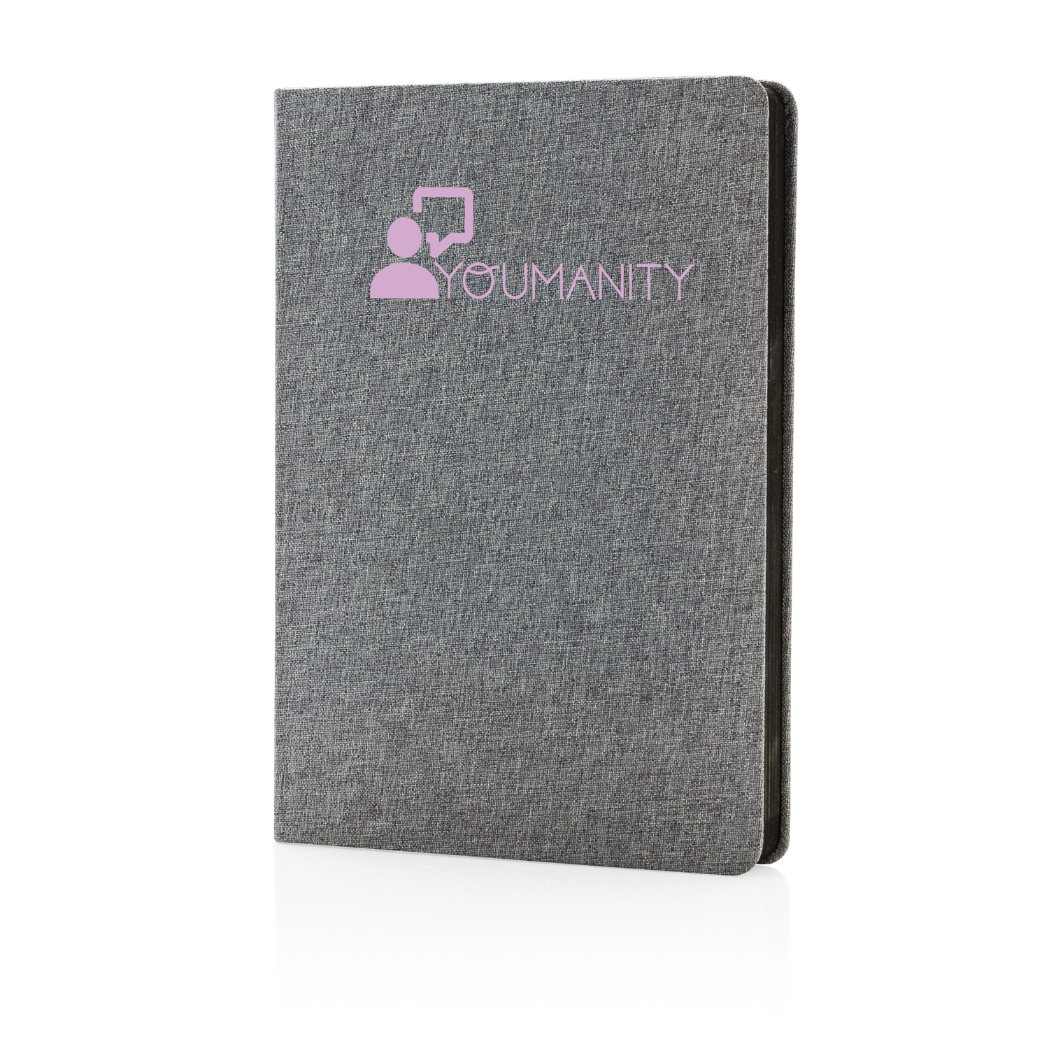 Стильный блокнот в тканевой обложке с черным ляссе. Размер B6 (12,8 х 18,6 см), 80 страниц плотностью 80г/м2. Кремовая бумага, срез черного цвета.