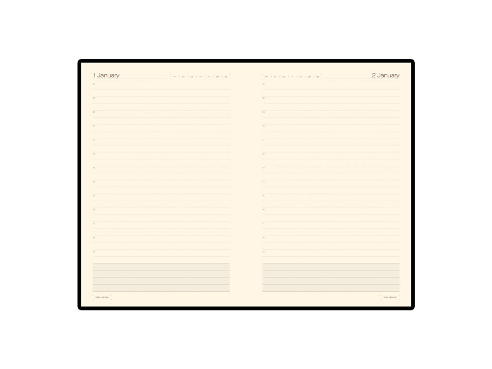 В ежедневнике «Porto» есть полезная справочная информация, а также 384 страницы для записи идей, мыслей и составления рабочих планов. Для изготовления страниц используется качественный бежевый офсет повышенной плотности (70 г/кв м). Сменный блок можно вынимать из обложки, вставлять новый, тем самым можно использовать ежедневник не один год.