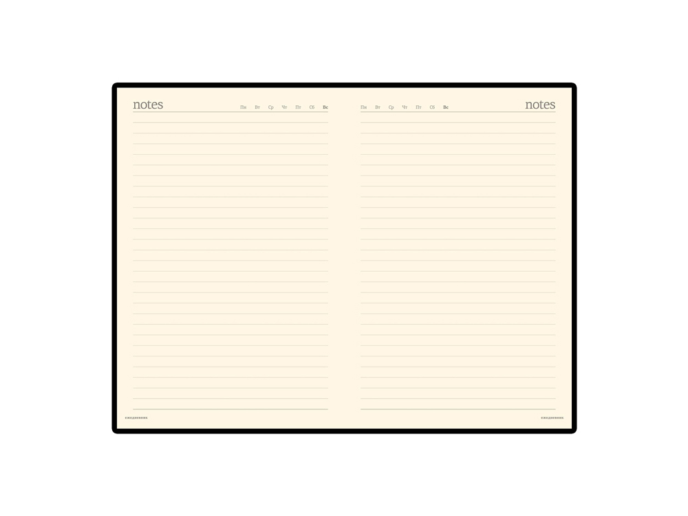 Ежедневник выпускается в универсальном формате А5. Размер обложки – 144*215 мм. В недатированном блоке для записей 320 страниц из тонированной бумаги бежевого цвета. Бумага плотностью 70 грамм.