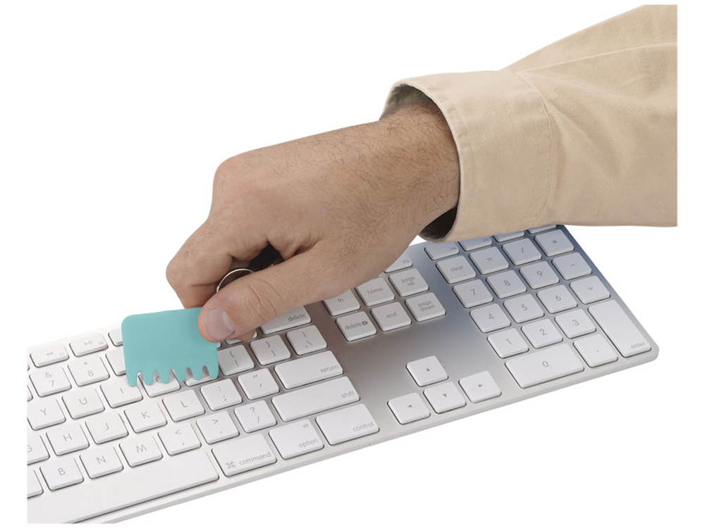 Эта силиконовая щетка предназначена для очистки пыли для клавиатур, мобильных устройств или очков. Прикреплено кольцо для ключей.