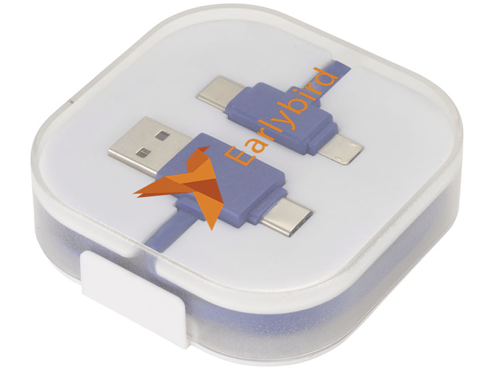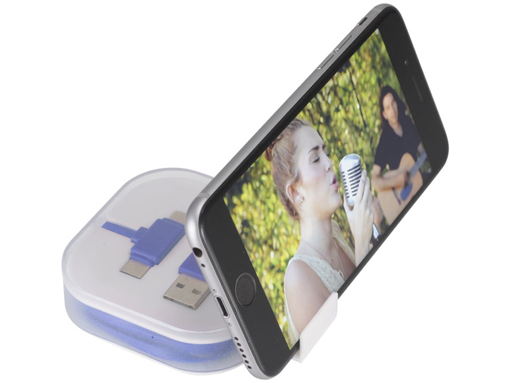 Кабель для зарядки 4-в-1 двух типов C: 1 USB типа A и 2-в-1 двухконтактных наконечников для устройств Apple iOS и Android. Используются как зарядка, так и передача данных. Чтобы зарядить устройства Apple, поместите кабель стороной, у которой нет контактов в устройстве, чтобы зарядить устройства Android, поместите кабель со стороны, в которой есть контакты в устройстве.