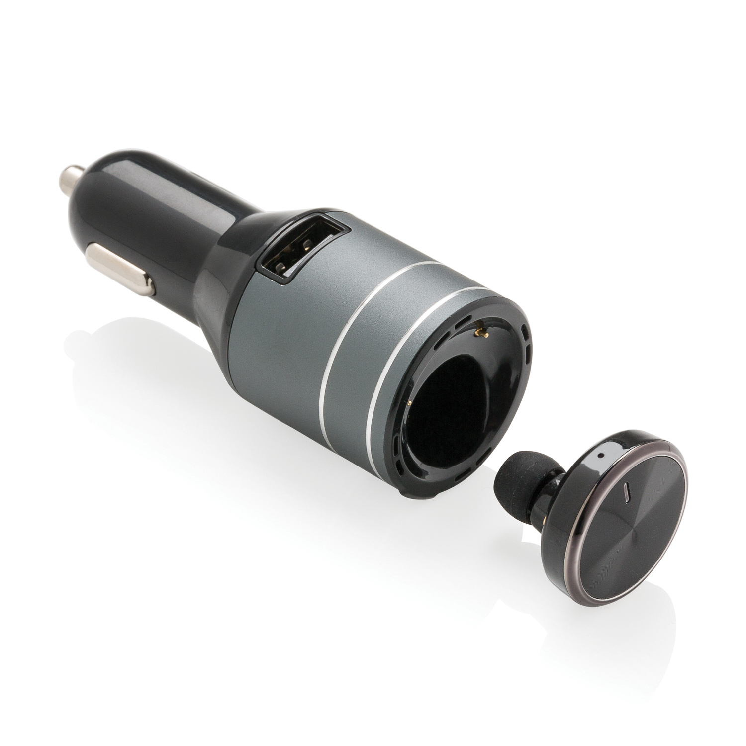Зарядное устройство для автомобиля поможет всегда оставаться на связи, а интегрированная гарнитура с идеальным благодаря Bluetooth 4.1 соединением обеспечит безопасность во время вождения. Одного заряда гарнитуры хватит на 1 час беспрерывного разговора, а на то, чтобы полностью зарядить гарнитуру, понадобится всего 1,5 часа. Устройство изготовлено из прочного ABS-пластика. На входе - 12-24V, и 2.1A - на выходе.