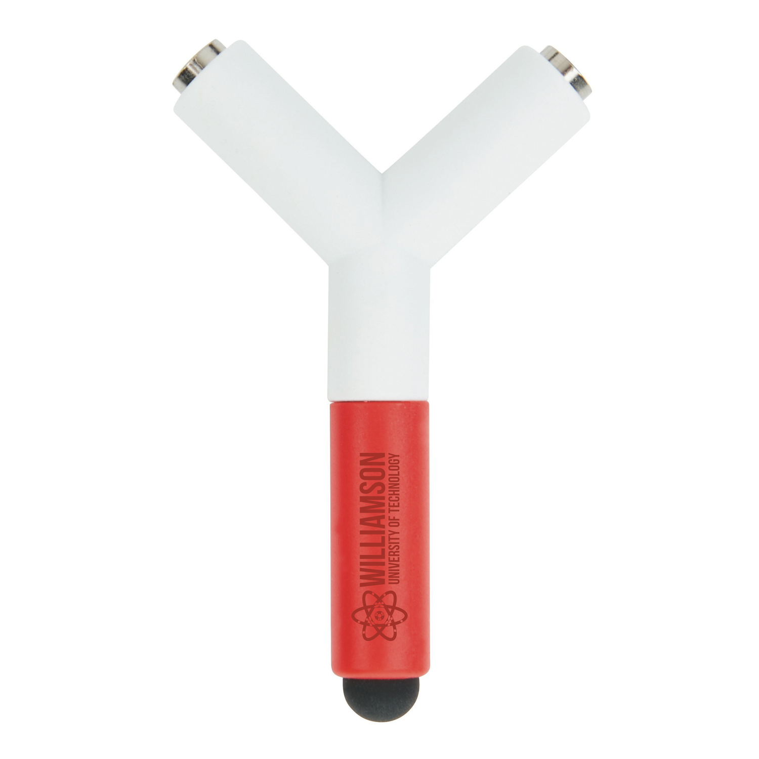 Универсальный сплиттер для наушников позволит вдвоем одновременно слушать одну и туже музыку через 2 пары наушников. Кроме того сплиттер имеет функцию стилуса, что позволит вам легко и просто работать с сенсорным экраном.