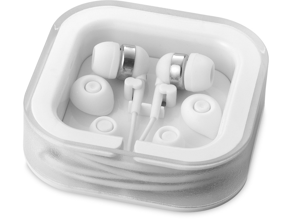 Наушники с микрофоном "Sargas". Отличные наушники со встроенным кабельным микрофоном, благодаря которым вы можете пользоваться своими медиа устройствами, не используя рук. Отвечайте и завершайте звонки, используя всего одну кнопку на микрофоне. Набор также включает три пары сменных резиновых насадок для наушников. Пластмассовый чехол с отделением для кабеля. Стандартный 3,5 мм аудио разъем с проводом для наушников длиной 96 см.