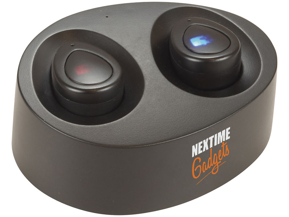 Беспроводные наушники с зарядным чехлом. Беспроводные наушники и зарядный чехол – это будущее наушников Bluetooth®. Наушники не соединяются проводом. После зарядки чехла его можно использовать в качестве портативного зарядного устройства для наушников. Выходная мощность наушников – 10 мВт. Наушники работают более 2 часов на одной зарядке и необходимы любому путешественнику. Благодаря эргономичному дизайну наушников они не выпадают во время ходьбы. Наушники имеют микрофон и встроенные кнопки для контроля звука. Рабочий диапазон Bluetooth® составляет 10 метров. В комплект входит зарядный кабель и маленькие/средние насадки. Размер зарядного чехла: 8 x 6 x 3 см. Время зарядки составляет 2 часа для наушников и 2 часа для чехла. Предлагаются в подарочной коробке Avenue. АБС-пластик.