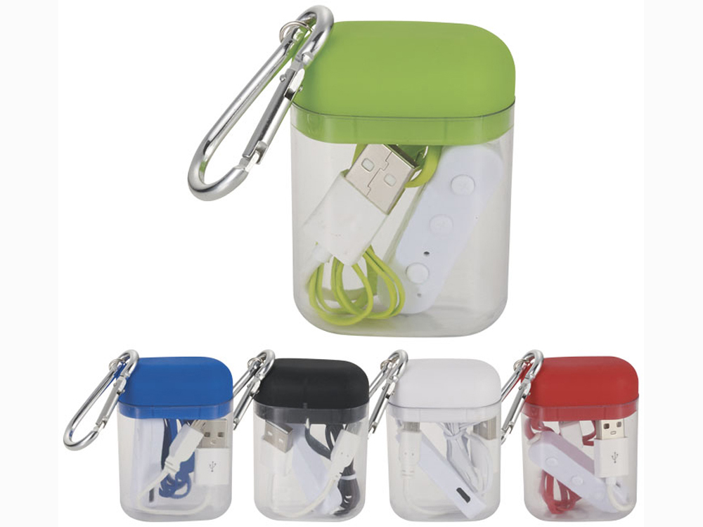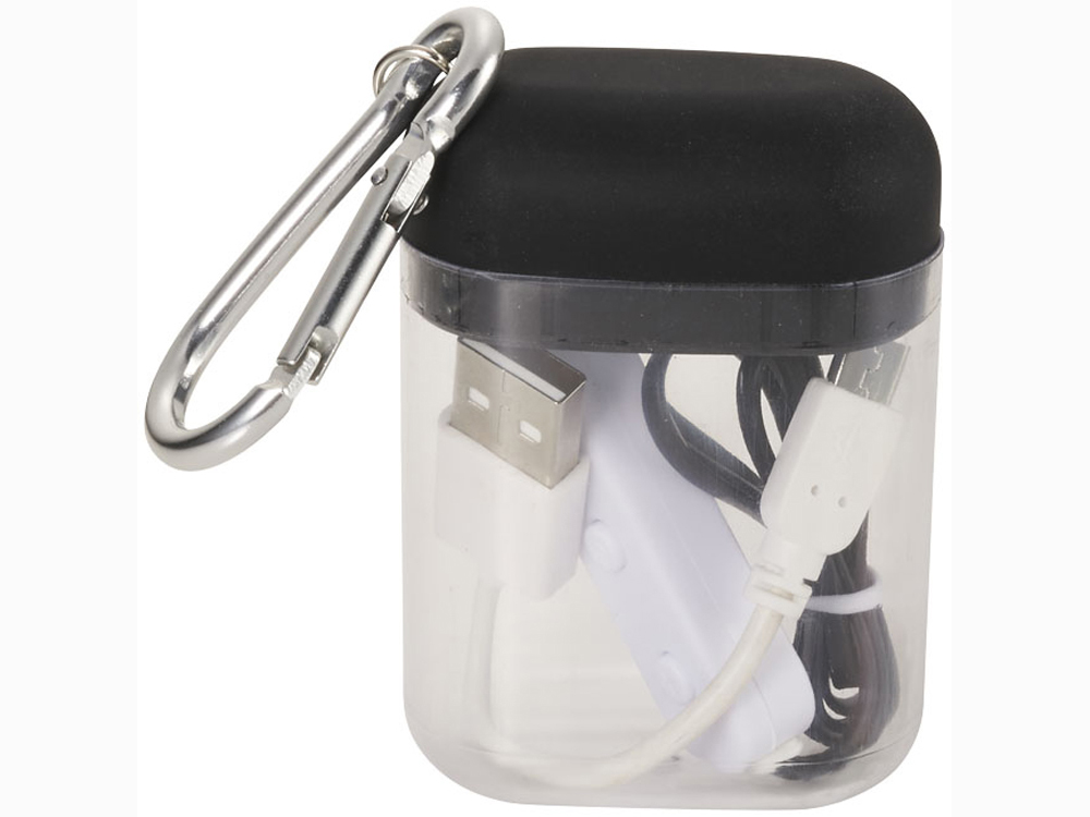 Недорогие наушники с функцией Bluetooth® с чехлом с карабином. Легкие наушники с функцией Bluetooth® со встроенным перезаряжаемым аккумулятором для 2,5 часов непрерывной музыки на максимальной громкости. Выходная мощность наушников – 20 мВт. Наушники имеют встроенные кнопки для контроля звука и микрофон. Жесткий пластиковый чехол для защиты наушников оснащен карабином для удобного крепления чехла в любом месте. В комплект входит кабель для зарядки с разъемом Micro USB. Рабочий диапазон Bluetooth® составляет 10 метров. Размер чехла: 5 x 2,9 x 7 см. Время зарядки – 1,5 часа. АБС-пластик.