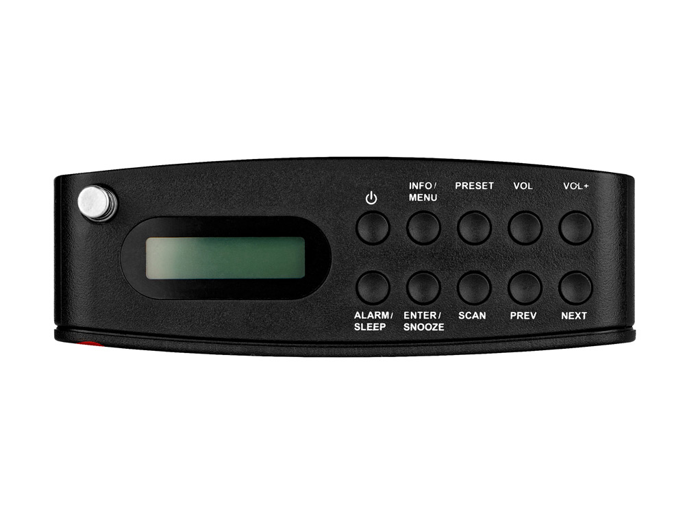 Будильник - радио DAB. Портативный радио приемник с функциями вывода текстовой информации на экран, программирования радиостанций, двумя звуками будильника и встроенным FM тюнером. Встроенный перезаряжаемый аккумулятор и выход для наушников.