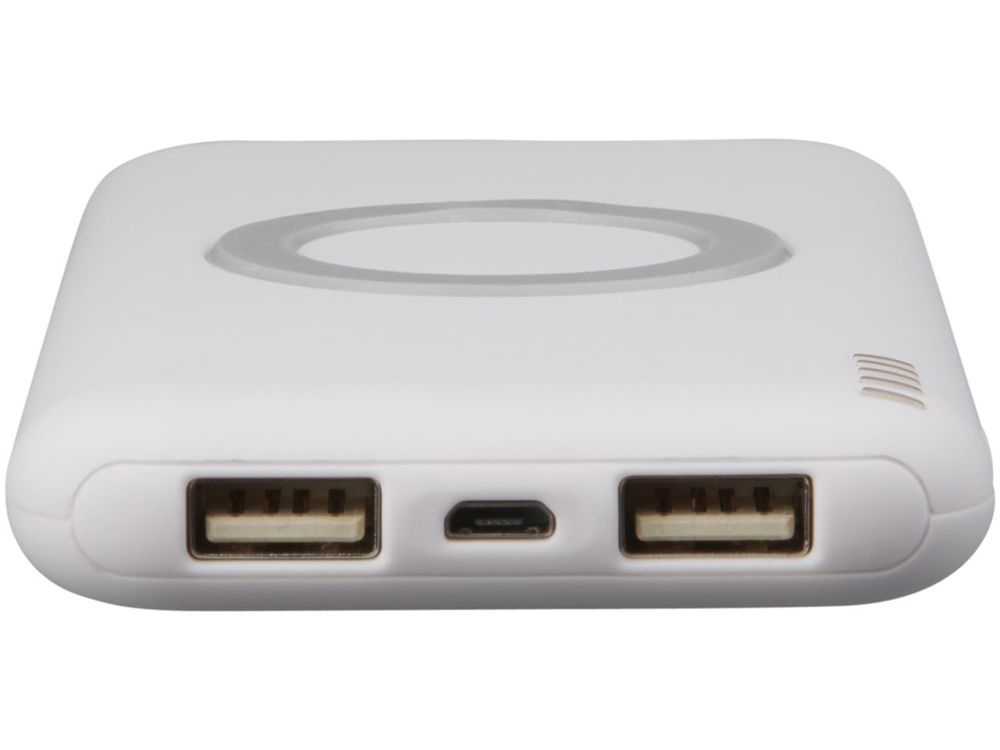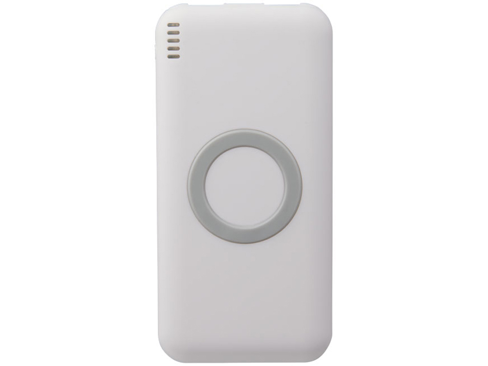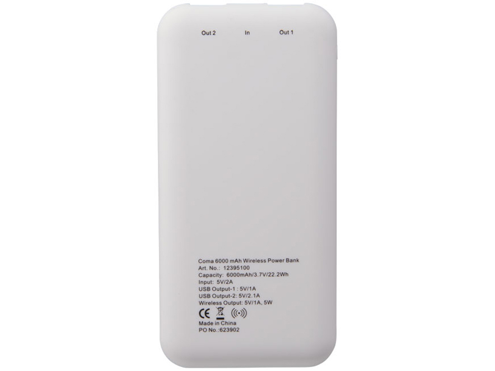 Беспроводное зарядное устройство Coma 6000 мА/ч. Беспроводное зарядное устройство Coma оснащено аккумулятором емкостью 6000 мА/ч для зарядки устройств без кабеля в кратчайший срок. Вы можете заряжать поддерживаемые устройства, просто положив их на зарядное устройство. Зарядное устройство легко включается и выключается с помощью одной кнопки питания, а 5 светодиодов показывают уровни мощности и зарядки. В комплект входит кабель для зарядки USB/micro USB. Предлагается в белой подарочной коробке. АБС-пластик.