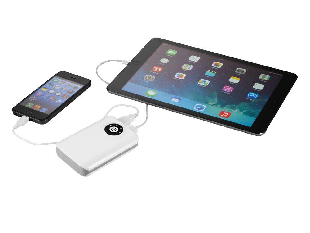 Зарядное устройство "PB-6600 Vault". Высокая емкость по умеренной цене. Зарядное устройство Vault емкостью 6600 мА/ч с двумя выходами: 5 В / 1 A и 5 В / 2 A. Светодиодный фонарик на конце устройства. Кнопка питания включает и выключает зарядное устройство и указывает количество оставшегося заряда. Устройство автоматически переключается в спящий режим для экономии заряда. Включает кабель для зарядки с коннекторами USB и micro USB.