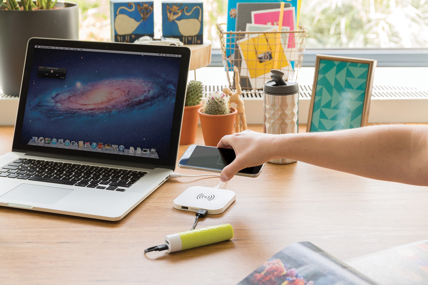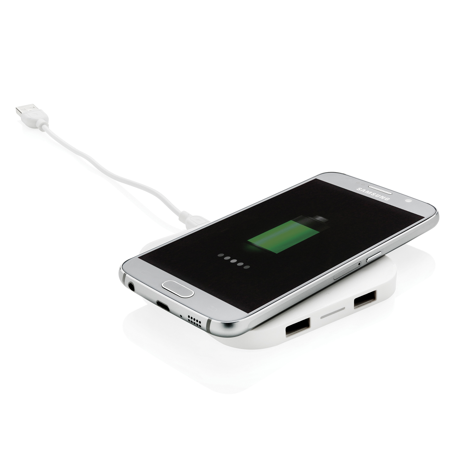 Док-станция для беспроводной зарядки подсоединяется к компьютеру через разъем USB и подходит для последнего поколения мобильных устройств с ОС Android. Более ранние модели и мобильные устройства с iOS можно подзарядить, подключив их кабель к любому из двух USB-портов, либо дополнив устройства приемником для беспроводной зарядки. Корпус станции изготовлен из прочного ABS-пластика. Не подходит для синхронизации.