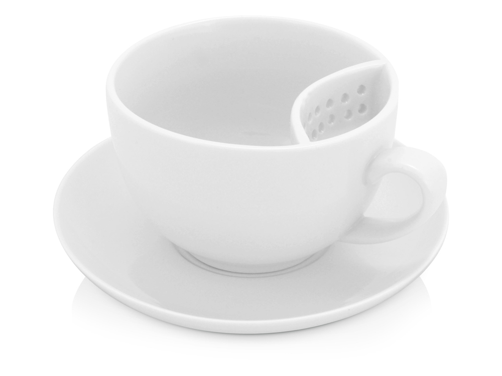 Симпатичная чайная пара с удобным отделением на чашке для чайных пакетиков. Нанесите на чашку логотип организации и подарите чайную пару своим сотрудникам или просто приобретите несколько наборов в офис. Объем чашки 250 мл.