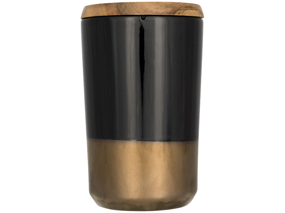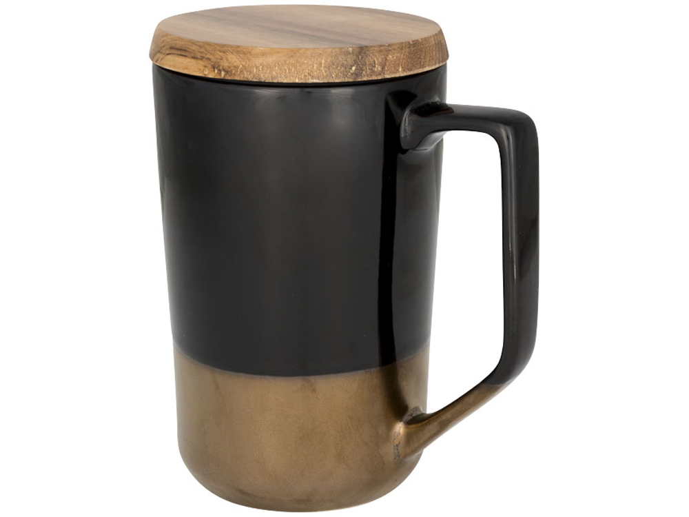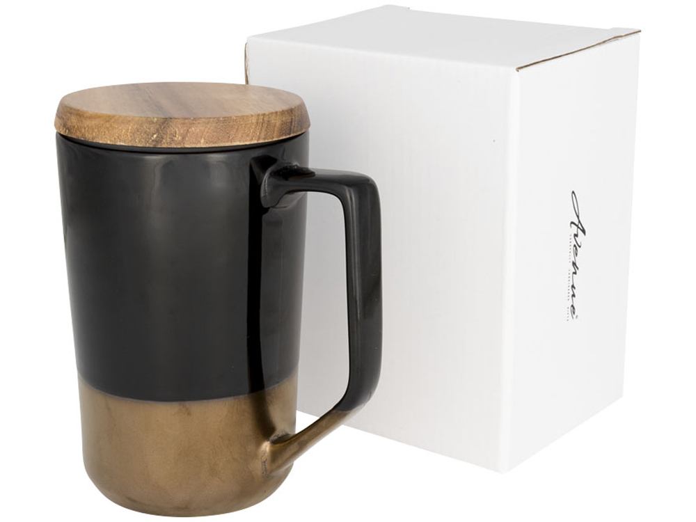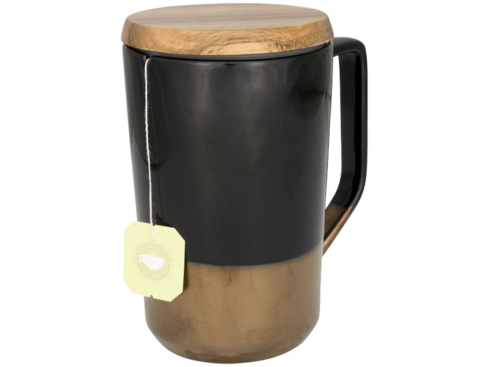 Керамическая кружка Tahoe для чая и кофе с деревянной крышкой. Удобная керамическая кружка с покрытием в стиле ретро. Имеет желобок инновационного дизайна на верхней части для чайных пакетиков. Деревянная нажимная водонепроницаемая крышка. Соответствует требованиям EN12875-1; подходит для мытья в посудомоечной машине даже после украшения. Объем — 470 мл. Представлена в подарочной коробке Avenue. Керамика и дерево.