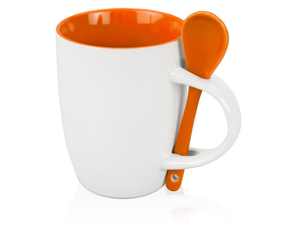 Стильная кружка на 320 мл с ложкой выполнены в контрастном сочетании цветов. Оригинальная форма ручки кружки позволяет крепить в ней ложку. Замечательный подарок для коллег по работе.