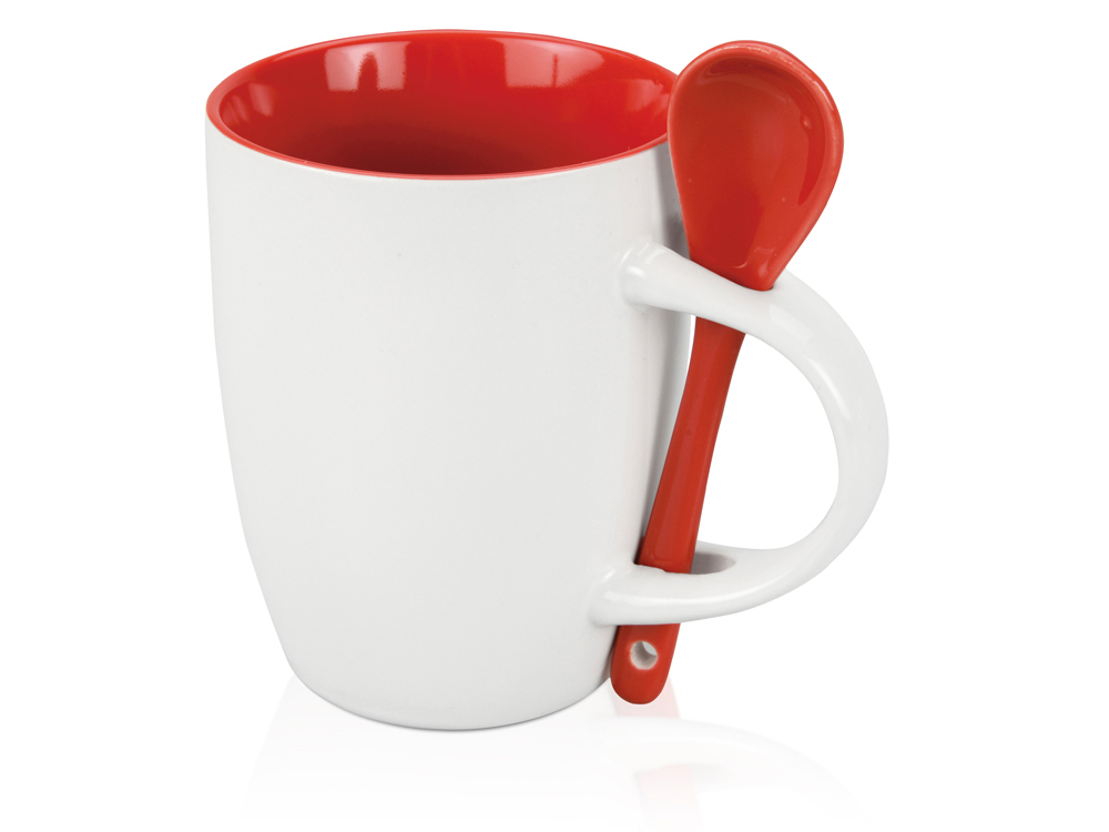Стильная кружка на 320 мл с ложкой выполнены в контрастном сочетании цветов. Оригинальная форма ручки кружки позволяет крепить в ней ложку. Замечательный подарок для коллег по работе.