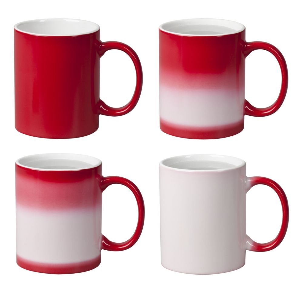 Цветное покрытие кружки «Хамелеон» создает эффект «цветного стекла»: нанесение выглядит так, словно мы смотрим на него через цветное стекло. Используйте более светлые краски, если хотите, чтобы изображение проглядывало сквозь цветной слой как можно меньше. Лучше всего краски нанесения перекрываются черным цветом, поэтому менее всего изображение будет заметно на .Гравировка до керамического слоя, результат — светлое фактурное изображение.