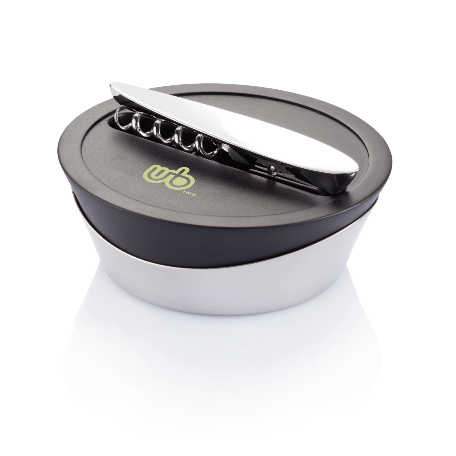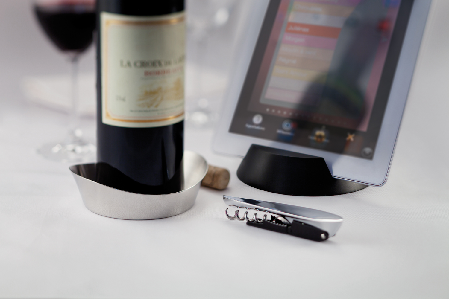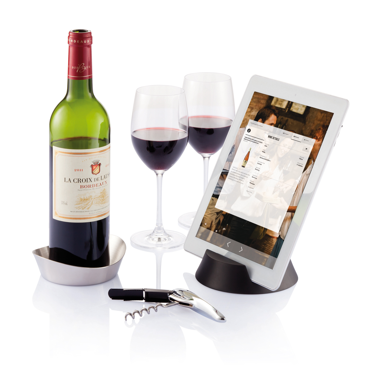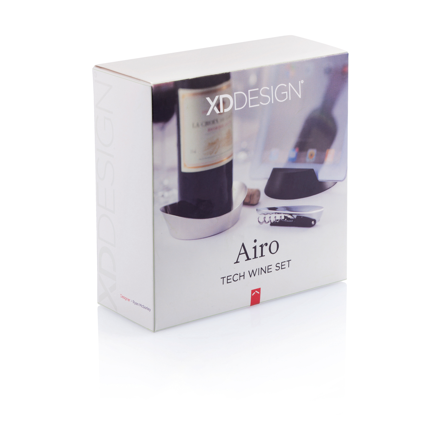 Airo Tech - набор для вина, объединяющий современные технологии с наслаждением вином. Набор Airo Tech включает в себя: штопор для вина, поднос для бутылки вина и держатель для планшета. Зарегистрированный дизайн®.