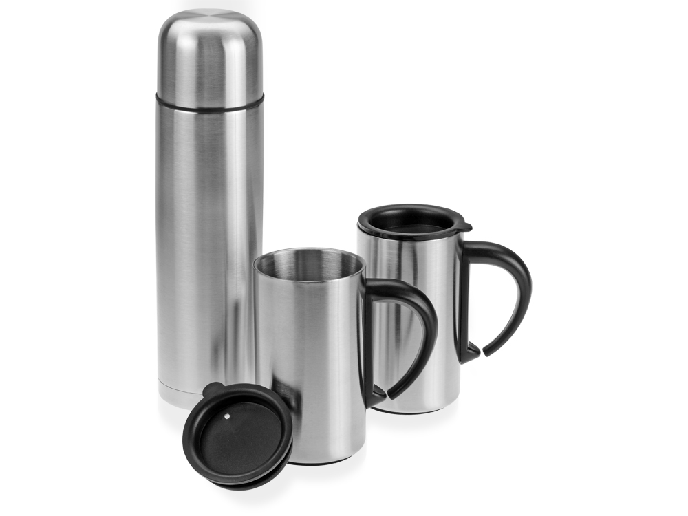 Набор включает в себя термос на 500мл и 2 кружки на 300мл, выполненные из высокопрочной нержавеющей стали. Термос поможет сохранить напитки горячими более 6 часов, а дорожная сумка с термоизоляцией удобна для переноски во время длительного пребывания в природных условиях.
