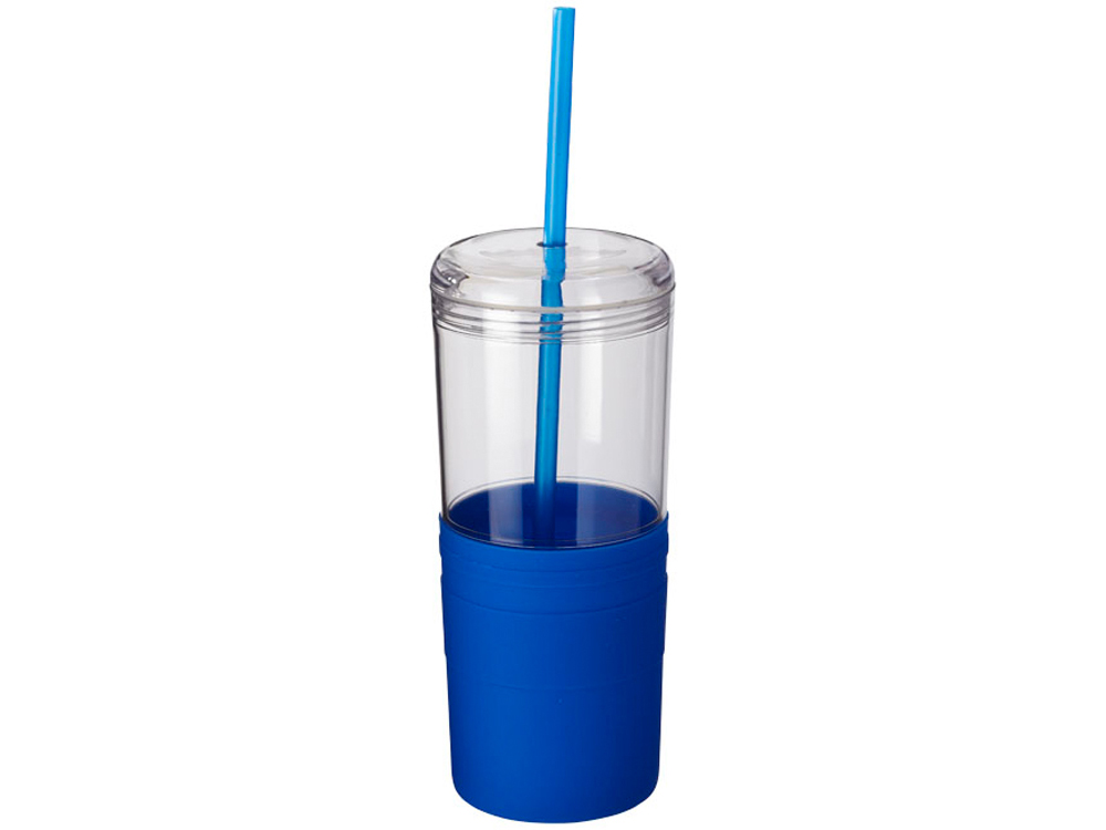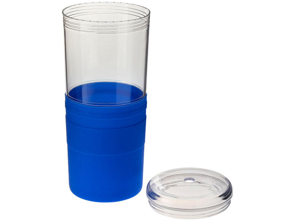 Стакан с трубочкой Babylon. Одностенный стакан с закручивающейся крышкой и цветным силиконовым держателем. Не скользит. В комплекте - трубочка в цвет. Объем 650 мл. АС пластик.