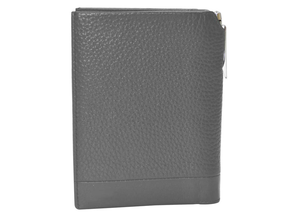 Обложка для документов включает в себя: одно отделения для банкнот, шесть отделений для кредитных карт, три универсальных кармана для документов. Комплектуется шариковой ручкой Cross с поворотным механизмом, длиной ¾ от стандартного размера — 12,0 см, она расположена в держателе на корешке обложки. Коллекция кожаных аксессуаров Nueva FV (Fossi & Valentio) выполнена в исконно итальянском стиле и тем самым завоевала сердца покупателей по всему миру. Изделия изготовлены из необычайно мягкой кожи.