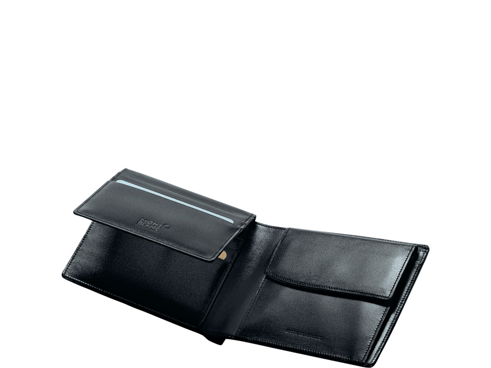 Портмоне из зернистой европейской яловичной кожи насыщенного оттенка, подкладка из жаккарда с фирменной маркировкой Montblanc, эмблема Montblanc и кольцо с палладиевым напылением, 2 отделения для кредитных карт, отделение для монет с клапаном.