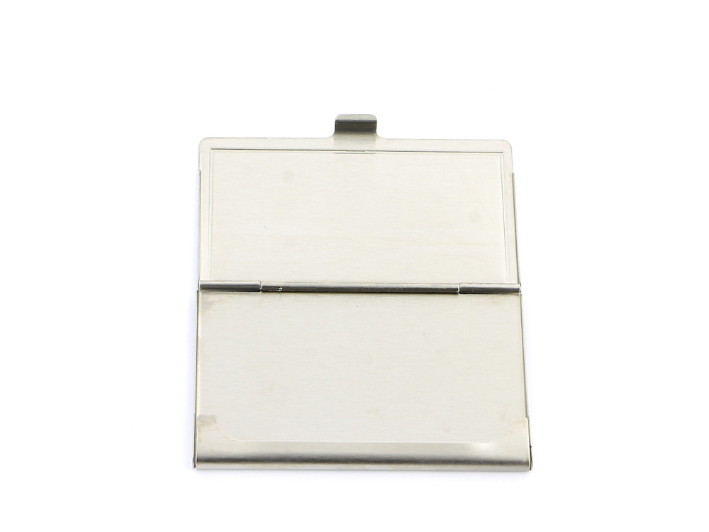 Визитница из металла с вставкой из искусственной кожи с местом для лого.