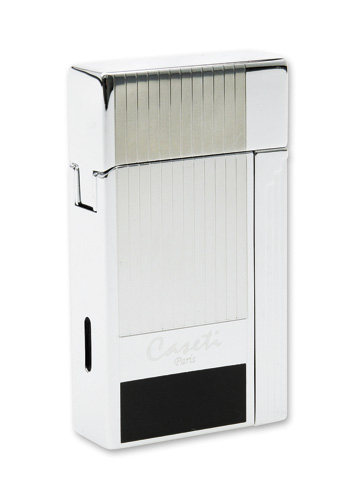 Зажигалка "Caseti" газовая турбо, серебро/хром матовый, насечка, черный лак, 3,5х1,3х6,2 см
