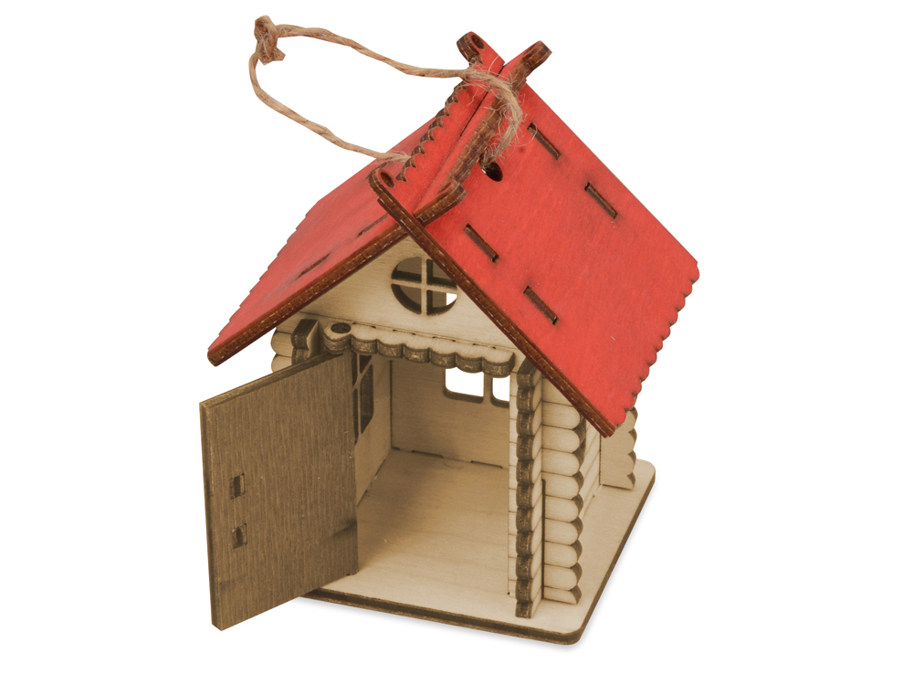 Небольшая елочная игрушка в виде лесной избушки. Дверца избушки открывается, внутрь можно положить небольшой сувенир, конфету или маленький светодиодный фонарик. Избушка с небольшим светящимся огоньком отлично украсит ваше новогоднее дерево, а несколько таких игрушек на елке с легкостью заменят новогоднюю гирлянду.