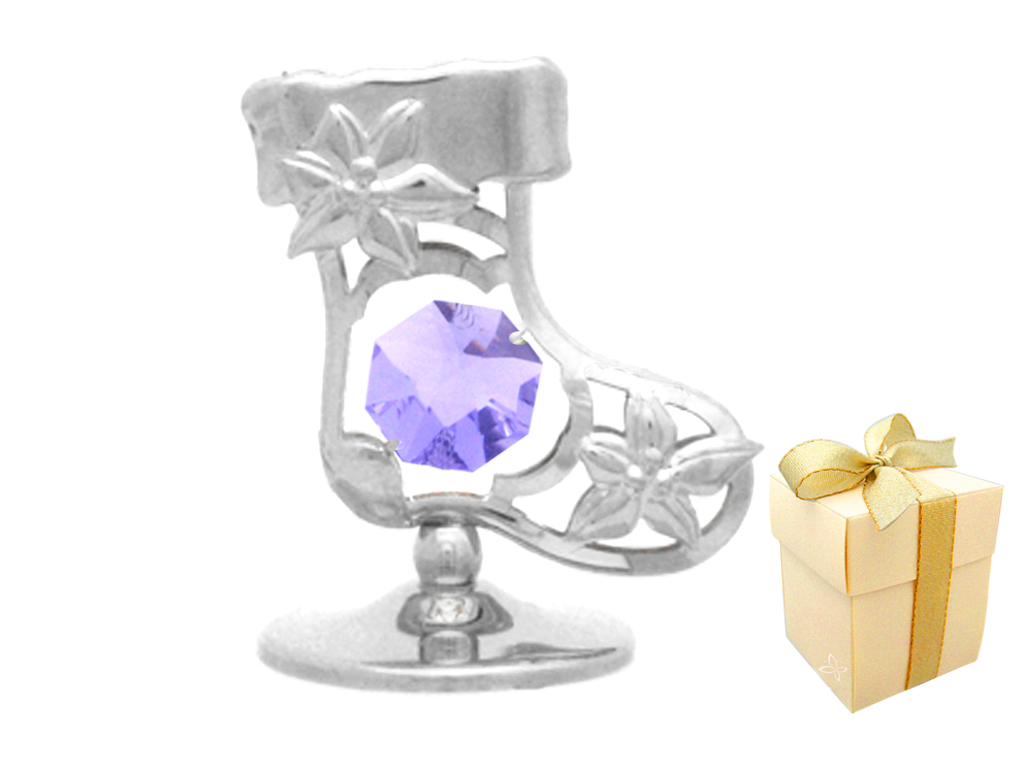 Миниатюра Crystocraft "Сапожок" серебристого цвета с сиреневыми кристаллами, сталь