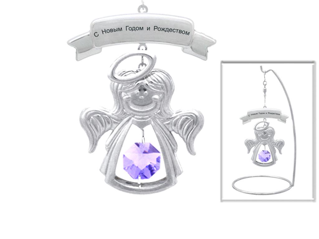 Миниатюра Crystocraft "Ангел" серебристого цвета с сиреневыми кристаллами, сталь, 6,5х6,5х13см