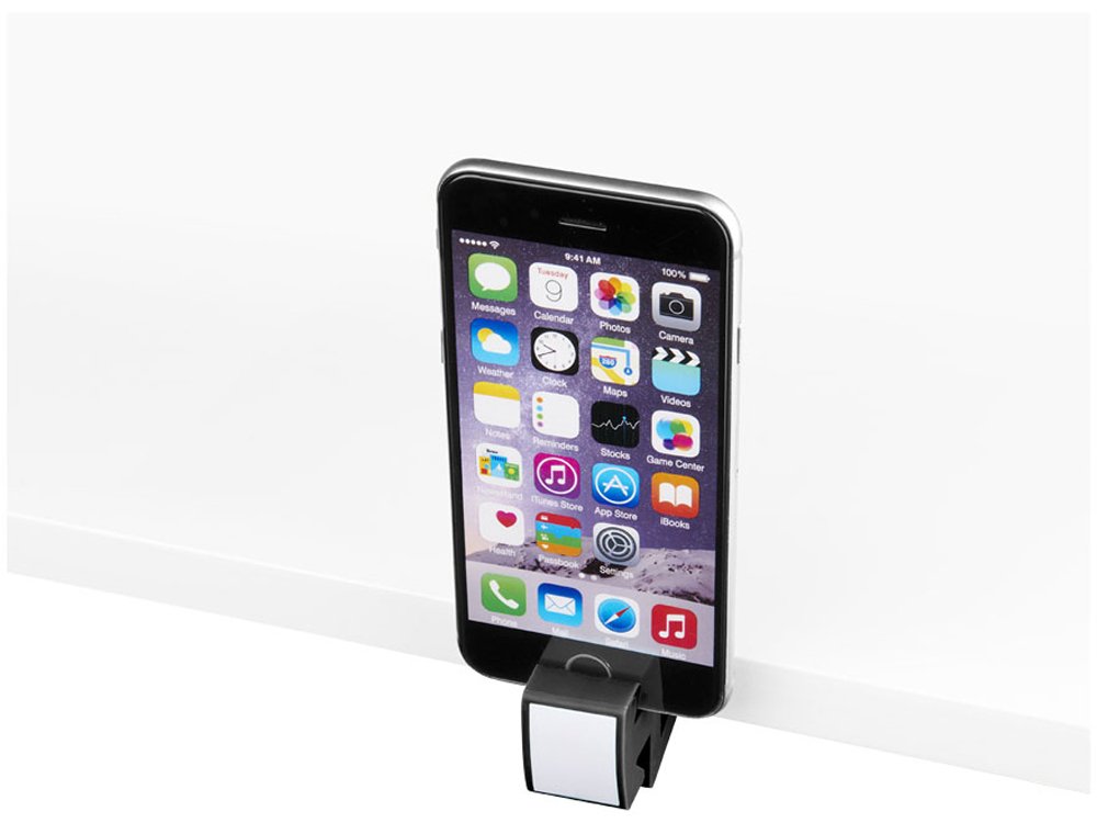 Многофункциональная подставка для телефона. Многофункциональная подставка для телефона позволяет размещать мобильное устройство в разных местах, например, крепить на рулевом колесе в автомобиле, держать телефон на столе в горизонтальном положении или закреплять на краю стола. Его можно даже закрепить на экране компьютера, если позволяет размер. Термопластичная резина.