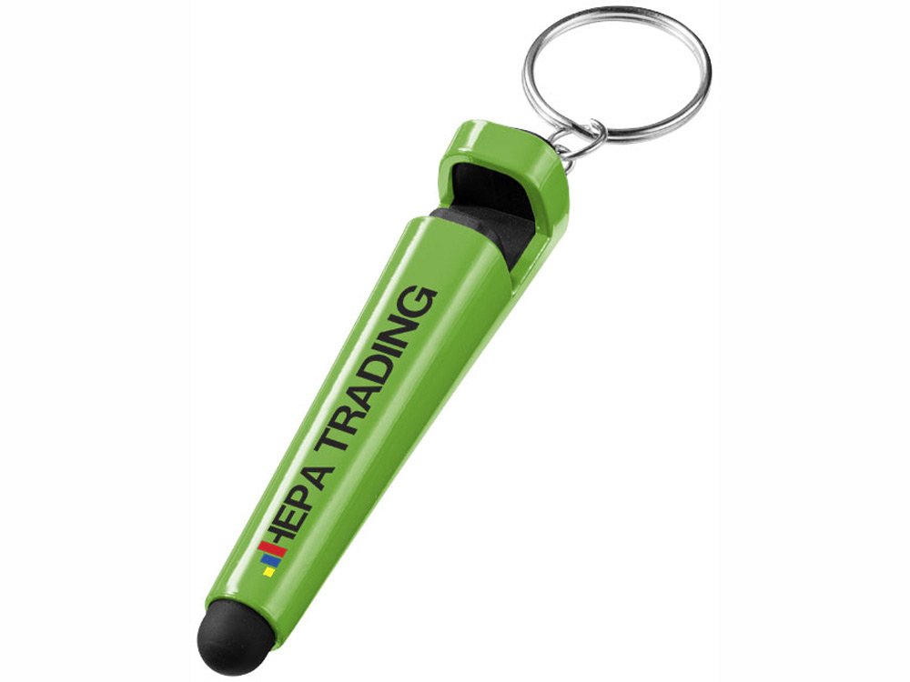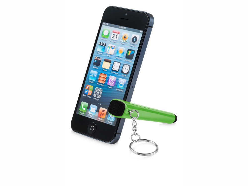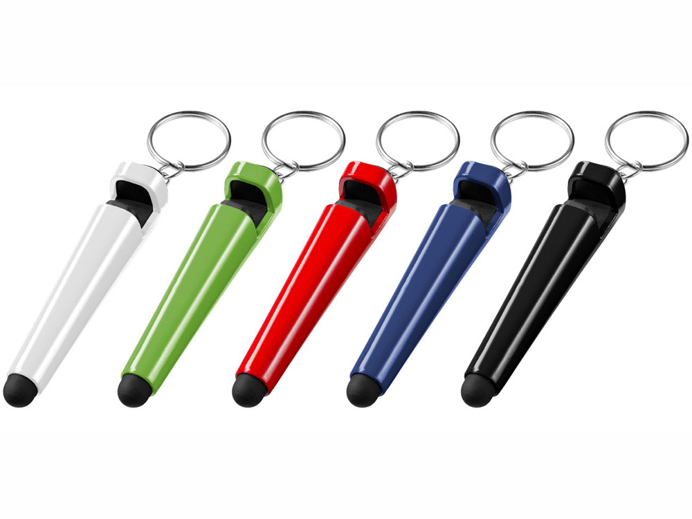 Брелок с четырьмя функциями – размещение ключей, подставка для смартфона, очистка экрана и стилус.