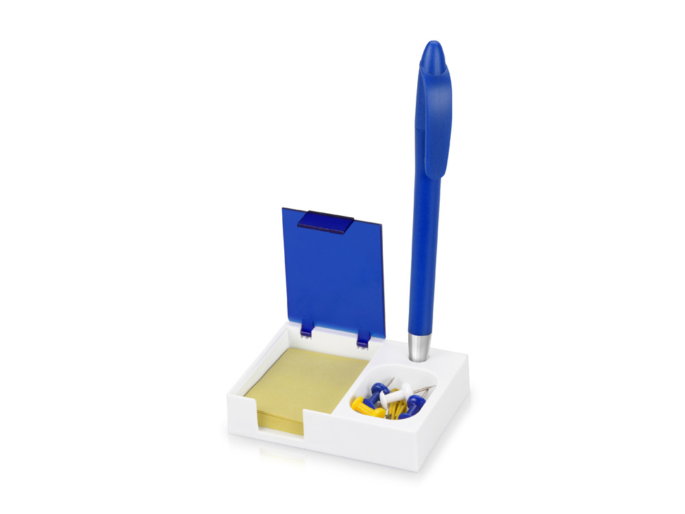 Яркая и удобная поставка под ручку, канцелярские скрепки и бумажный блок превосходно организует ваше рабочее место. Отличный подарок при проведении промо-акций.