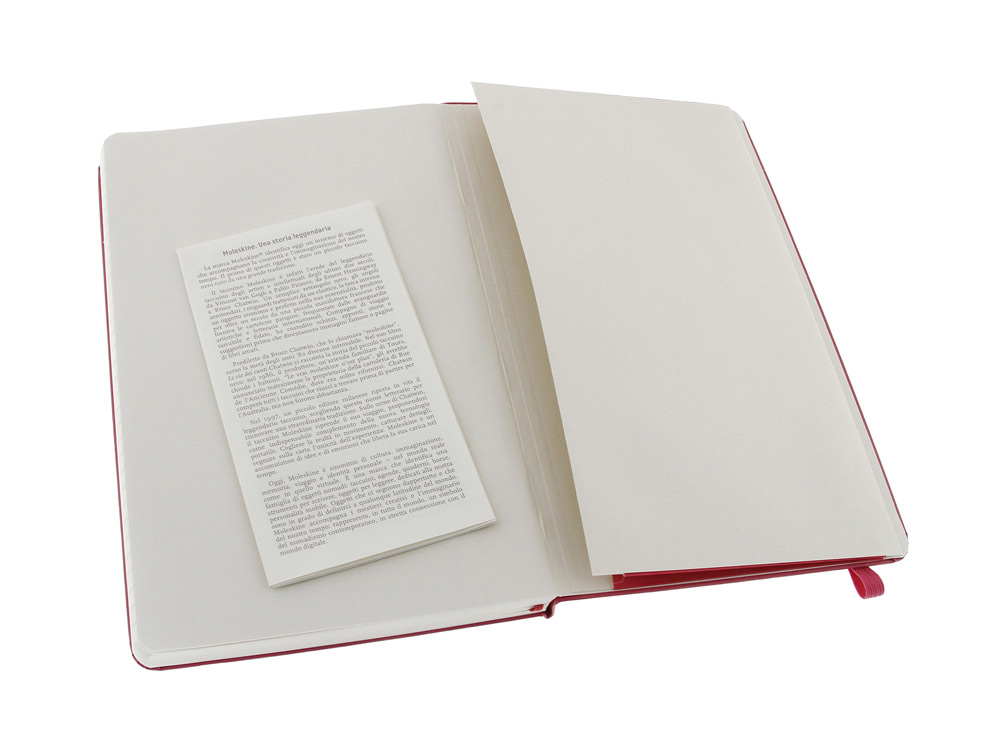 Эта простая, но уже ставшая классикой записная книжка является одним из самых популярных изделий Moleskine. Этот надежный спутник, идеально подходящий для записи мыслей, идей и заметок, выполнен в картонной обложке со скругленными углами, с листами в линейку из бескислотной бумаги, закладкой, эластичной застежкой и вместительным внутренним карманом, куда вложена открытка с историей Moleskine.