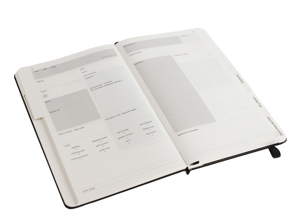 Рестораны, бары, кафе, закусочные и советы от шеф-повара. Планируй или оживляй в памяти самые яркие вкусовые впечатления.Тетрадь содержит 5 тематических разделов и 5 разделов с закладками, которые можно озаглавить по своему вкусу;место для заметок о ресторанах, барах и кафе; советы шеф-повара; сведения о еде на вынос, лист пожеланий;пустые страницы для твоих комментариев;202 белые и цветные наклейки для оформления тетради.Обложка и корешок с черным глянцевым тиснением.Двойной вместительный внутренний карман.