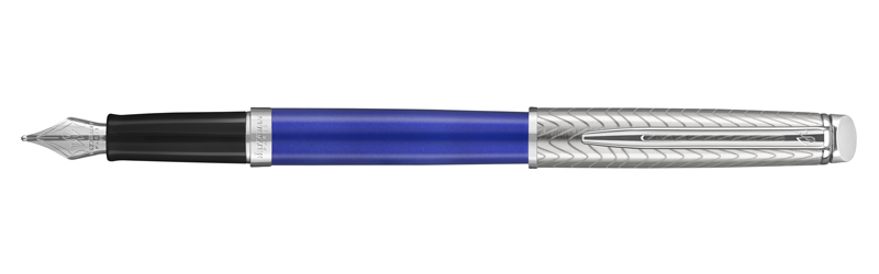 Перьевая ручка Waterman Hemisphere Deluxe Blue Wave CT. Перо из нержавеющей стали, корпус и колпачок - сталь, детали дизайна - палладиевое покрытие, линия письма - тонкая