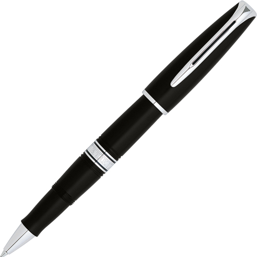 Роллерная ручка Waterman Charlestone Ebony Black CT. Корпус и колпачок- акриловая смола, детали дизайна - палладиевое покрытие, линия письма - тонкая